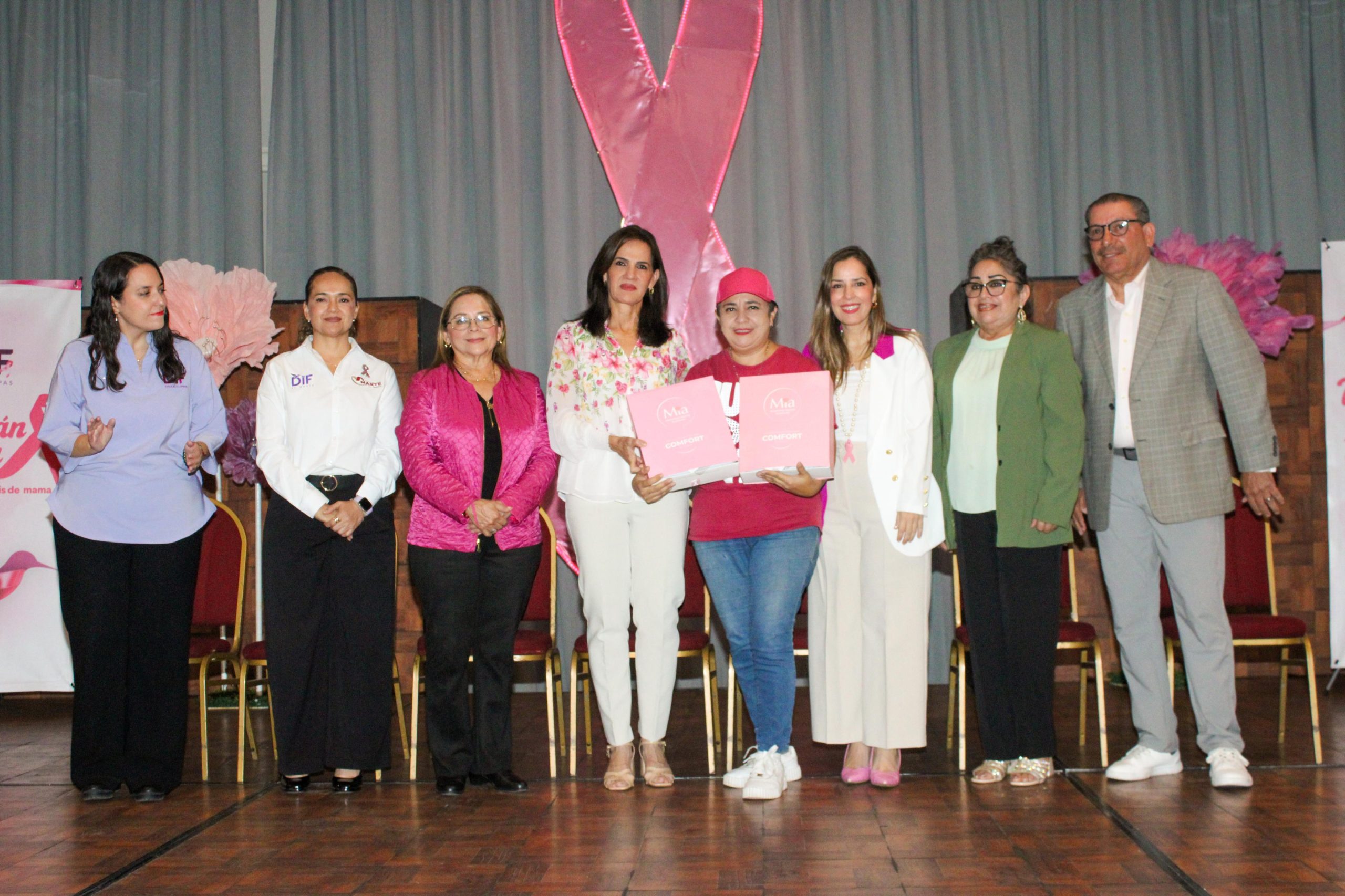Durante la ceremonia, la Presidenta del DIF maderense reconoció el invaluable respaldo del Organismo Estatal, mismo que impulsa acciones para lograr que las mujeres en Tamaulipas con diagnóstico de cáncer puedan tener un mayor acceso a reconstrucciones mamarias y prótesis.