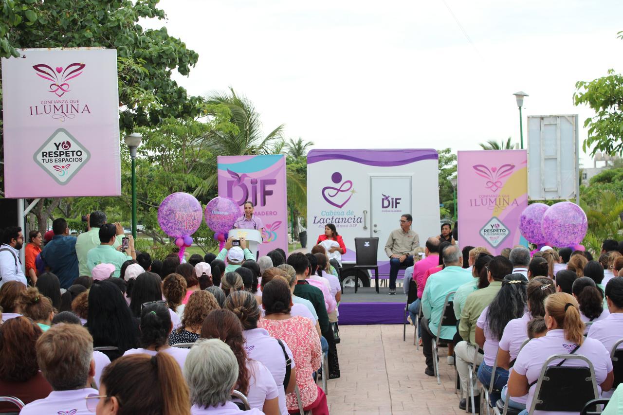 Con el objetivo de ofrecer un espacio digno, seguro y cómodo para que las madres puedan amamantar o extraer leche materna en condiciones adecuadas, el Sistema DIF Ciudad Madero que encabeza su Presidenta, la Lic. Dunia Marón Acuña, inauguró este miércoles la primera Cabina de Lactancia en el Parque Bicentenario, dentro del marco de la Semana Mundial de la Lactancia Materna.