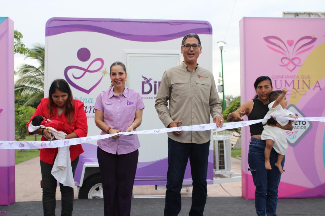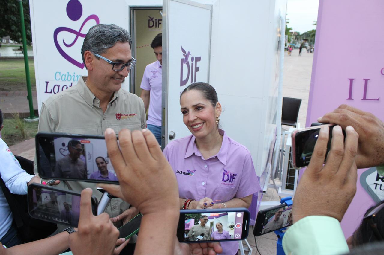 Correspondió a la C.P. Nayeli Rodríguez Crespo, Subdirectora administrativa del DIF hacer mención que dicha cabina está equipada con mobiliario especialmente diseñado para la comodidad de las madres, como banca acolchonada, espejo de tocador, cambiador de pañales, aire acondicionado tipo minisplit, extractor de aire, dispensadores de gel antibacterial y toallas desechables, iluminación LED y un frigobar para la conservación de la leche materna. Todo ello dentro de una caseta tipo remolque completamente sanitizada y con accesibilidad universal.