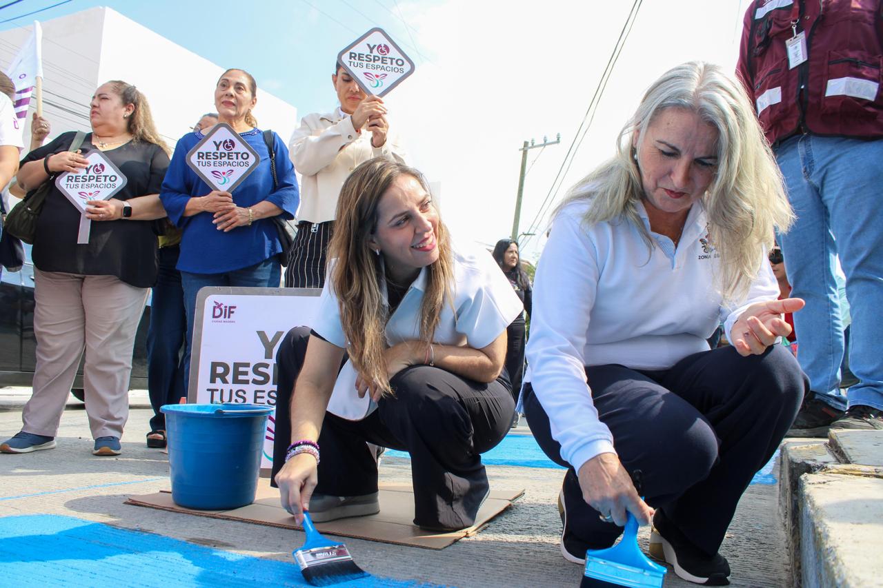 Acompañada por el Director General de Servicios Públicos del Ayuntamiento, Ing. Gerardo Soto Nájar, y recibida por la directora del plantel, Mtra. María del Carmen Quezada Martínez, se realizó la aplicación de pintura en dos cajones de estacionamiento exclusivos para personas con discapacidad, así como en una rampa de acceso, como parte del programa “Yo Respeto tus Espacios”.